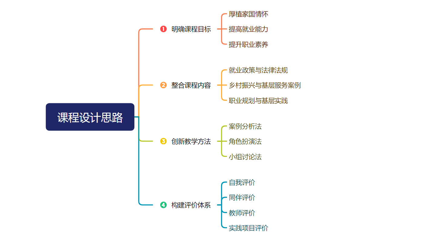 分析育人目标:引导学生了解国家关于大学生就业的政策、法规,树立正确的世界观、人生观、价值观,厚植家国情怀,为实现中国梦,在职业发展中践行社会主义核心价值观。