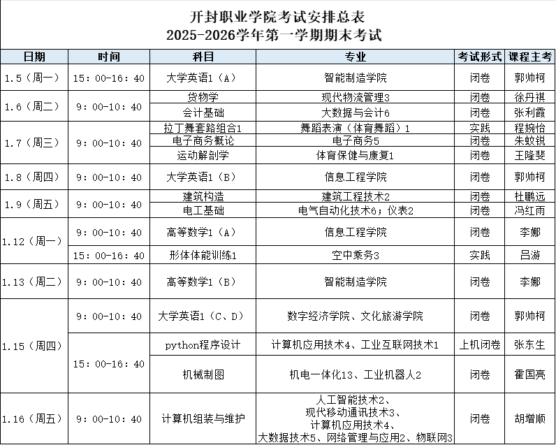 为保证2025-2026学年第一学期期末考试工作的有序进行,现将有关事项通知如下: