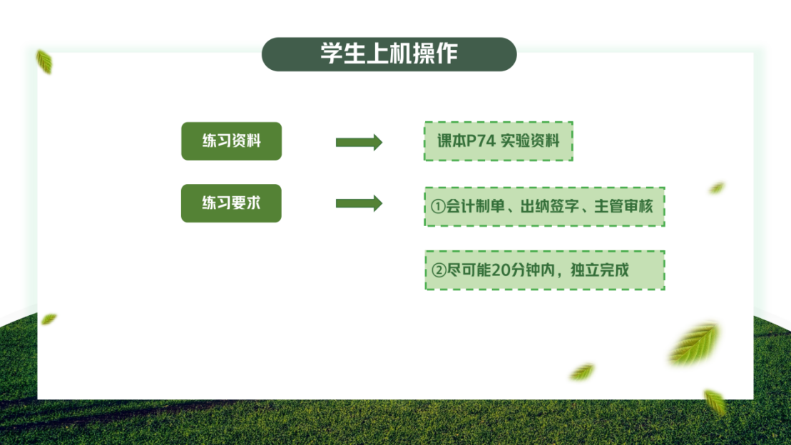 ④学生上机操作:按照教学流程,填制课本74页三笔业务凭证,并以出纳身份对其进行签字,以财务经理身份对其进行审核。操作过程中遇到的疑难问题,可在讨论群内提问,也可在举手单独向老师提问。