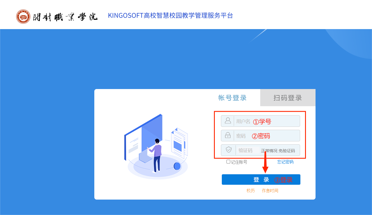 第一步:登陆网址https://jwxt.kfvc.edu.cn/kfzyjw/cas/login.action