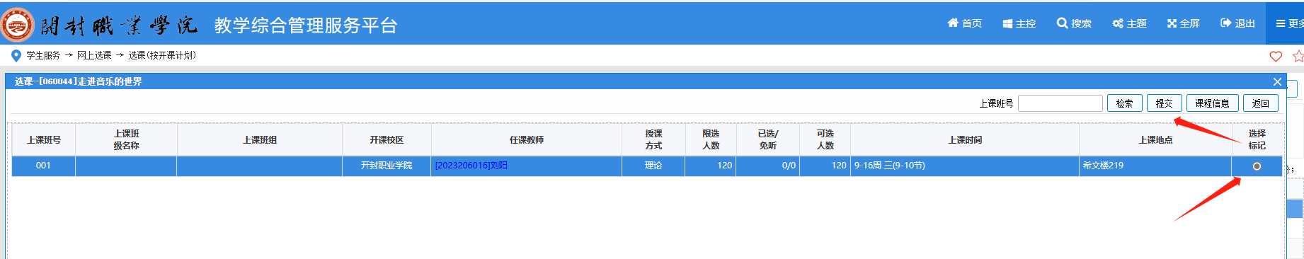 第六步:选择标记点⭕后提交。(注:课程信息可查看课程介绍)