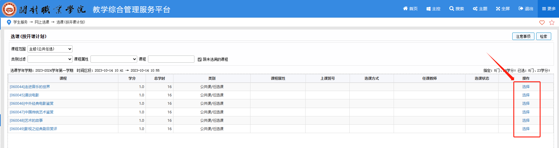5.学生在校期间需要修够一门普通类选修课及一门艺术类选修课。公共选修课如考核不及格,不再组织补考,只能重修,且公共选修课也为学生毕业条件之一,望广大同学按时选课、按时学习。